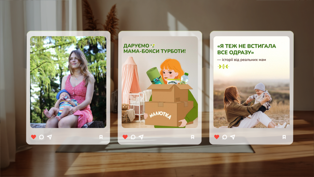 Соціальні мережі бренду стали основним простором для підтримки мам після народження дитини. Реалізували окремий спецпроєкт, де спершу ділилися історіями мам про їхній досвід материнства та порадами, які вони хотіли б почути раніше, модеруючи обговорення у коментарях. Після цього м’яко переходили до дії: розповідали про руханку, її особливості та кому вона може підійти.